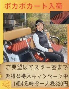 冬のラウンドに暖かいぽかぽか温熱シートの乗用カート新機能を導入しました。